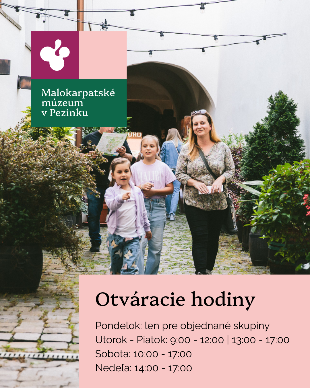radi by sme vás informovali, že Malokarpatské múzeum v Pezinku bude v piatok 1. mája 2026 zatvorené. Tešíme sa na vašu návštevu opäť počas víkendu 2. – 3. mája 2026.