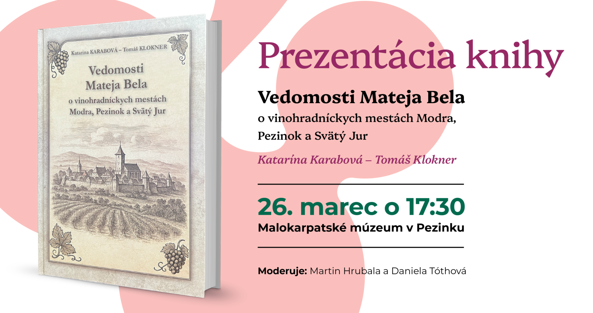 Pozývame vás na prezentáciu novej knihy Vedomosti Mateja Bela o vinohradníckych mestách Modra, Pezinok a Svätý Jur.